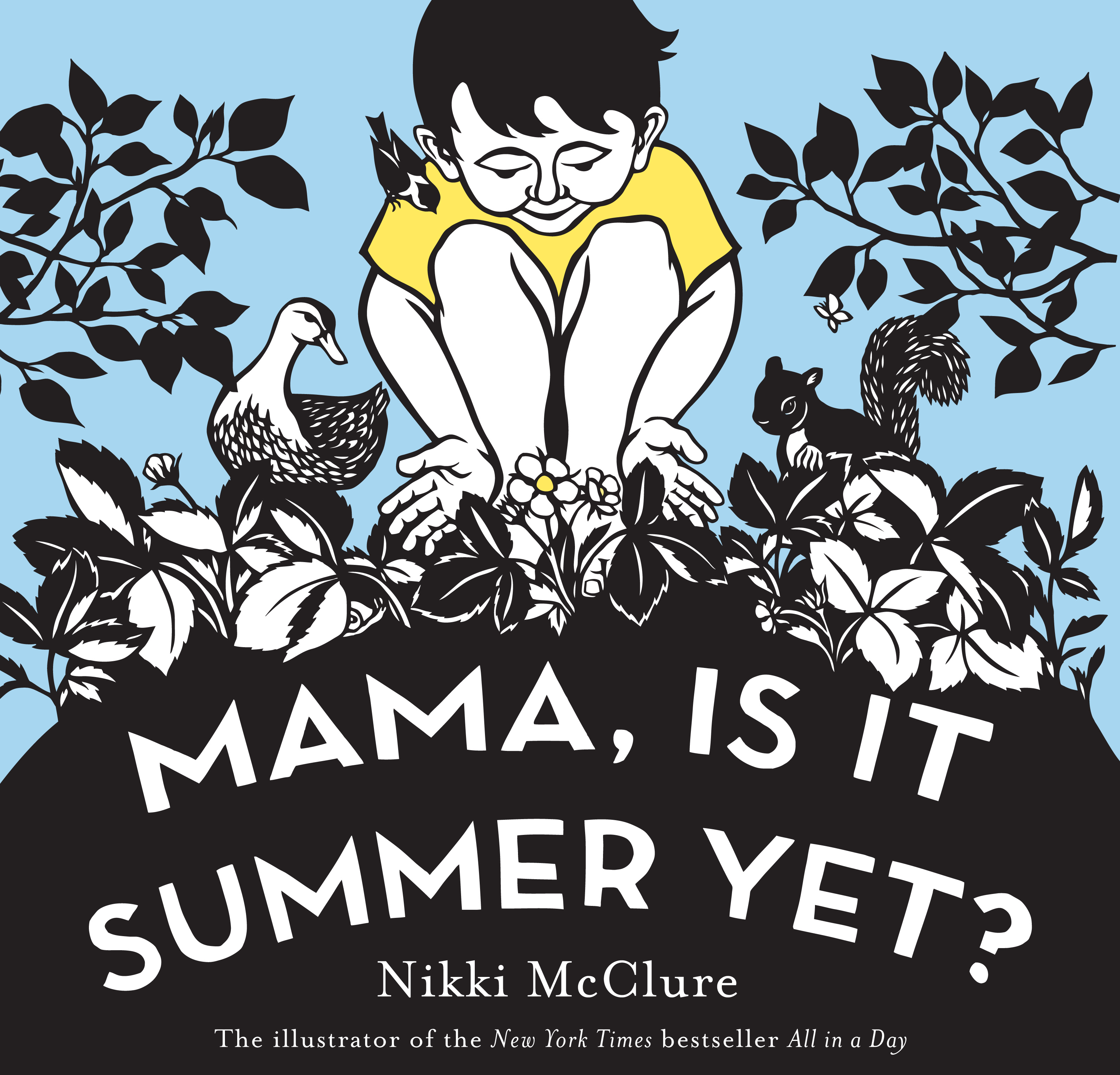 Young children see the passage of time through the seasonal changes to the world around them in this charming book, illustrated with Nikki McClure’s extraordinary cut-paper art. A little boy who can’t wait for summer keeps asking his mama, “Is it summer yet?” Mama says, “Not yet, little one,” then points to the signs that spring is turning to summer—the softening of the earth, the nest-building of squirrels, the singing of birds—and encourages her son to savor the beauty of spring.