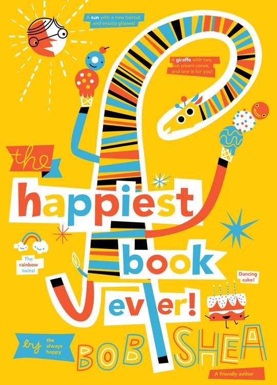 What could be happier than a book with a dancing cake, a candy parade, and a hug monster? A book with all those things (and more) plus YOU! Your happy, happy thoughts will make this book super happy happy! But something seems off. Could it be that frowny frog? Perhaps we could shake some sense into him, or slap a Post-it over his face. No? Well then, maybe it’s time for that frog to SCRAM! Hooray! He’s gone! Time for a happy dance! Wait, what’s wrong? Now NO ONE seems happy! Let’s see if we can’t do something to truly make this the happiest book ever.