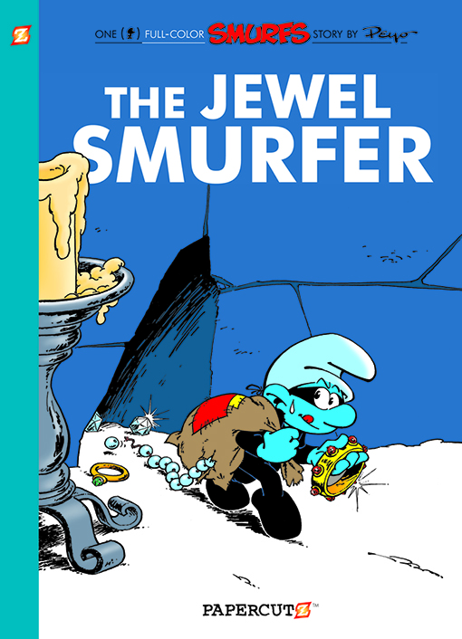 On the road leading to the town of Abelagot, two humans, Adhemar and Godillot discover an unconscious Jokey Smurf and take him along with them. Then a mysterious stranger, suggests they all get rich by taking advantage of the duo’s diminutive blue discovery. Before he knows what’s happening, Jokey Smurf is forced in to a life of crime, using his small size to break in to houses and rob the townspeople of their precious belongings. He has become – the Jewel Smurfer!