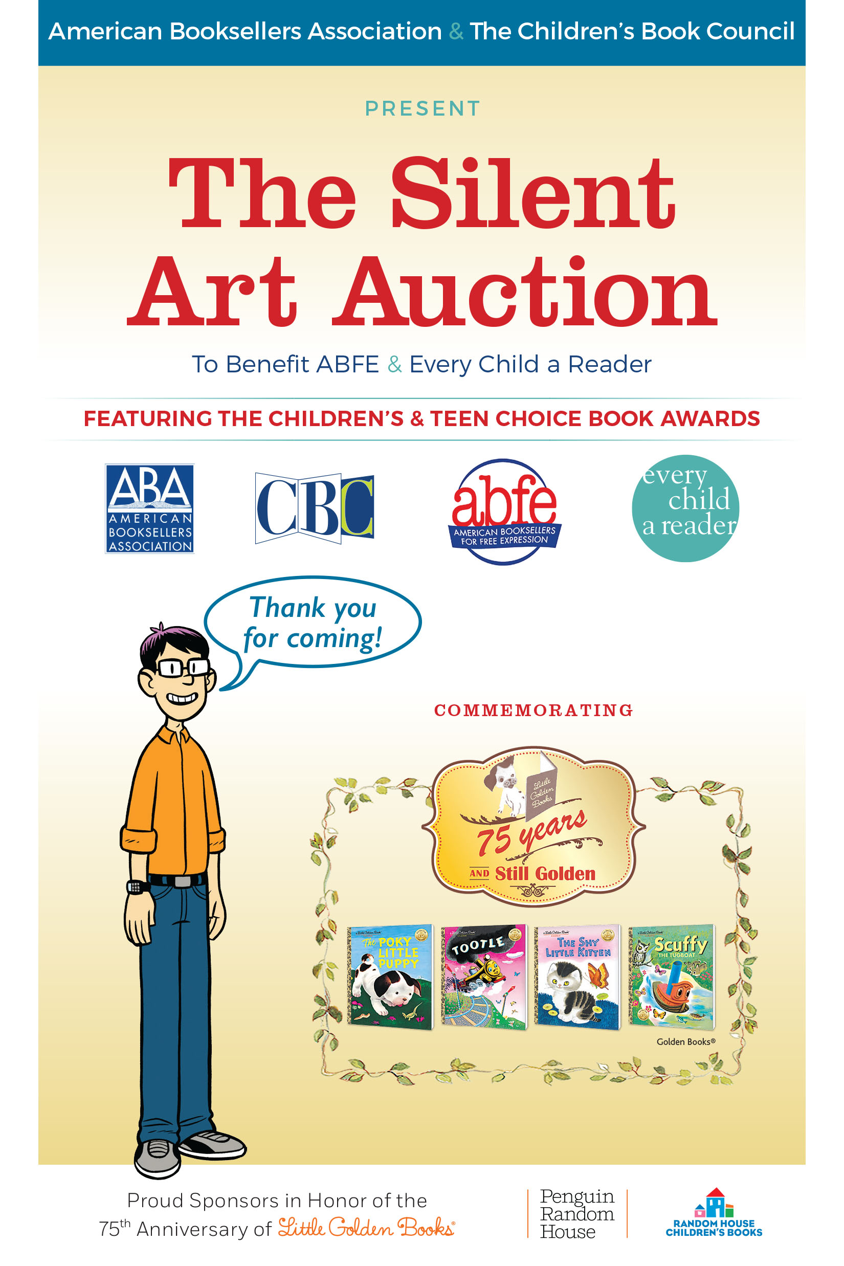 Find out more details about the Silent Art Auction including the celebration of Little Golden Book’s 75th Anniversary, schedule, exact location, and ticket details at the ABA website here.