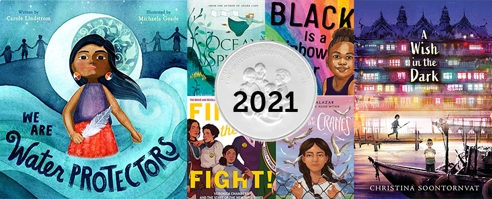 We Are Water Protectors, written by Carole Lindstrom, illustrated by Michaela Goade and published by Roaring Books Press, is the winner in the Books for Younger Children Category. A Wish in the Dark, written by Christina Soontornvat and published by Candlewick Press, is the winner in the Books for Older Children Category.